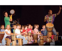 Ein Hauch von Afrika im Kindergarten "Heiße Rhythmen: Der Musiker Joseph Wasswa trat mit seiner Trommelgruppe im Regensburger Kindergarten St. Josef auf.“ |